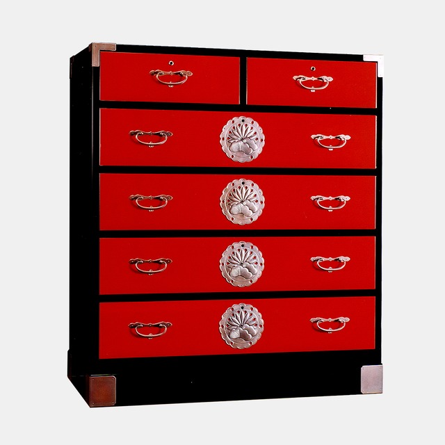 仕上げ: 抽斗前板=拭き漆仕上げ、本体側=油性漆塗装
